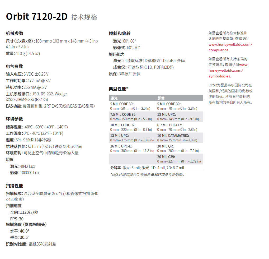 霍尼韦尔7120-2d