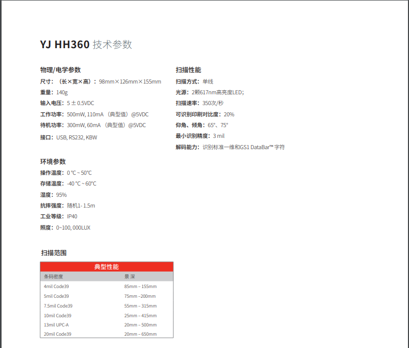 霍尼韦尔HH360一维有线影像扫描仪