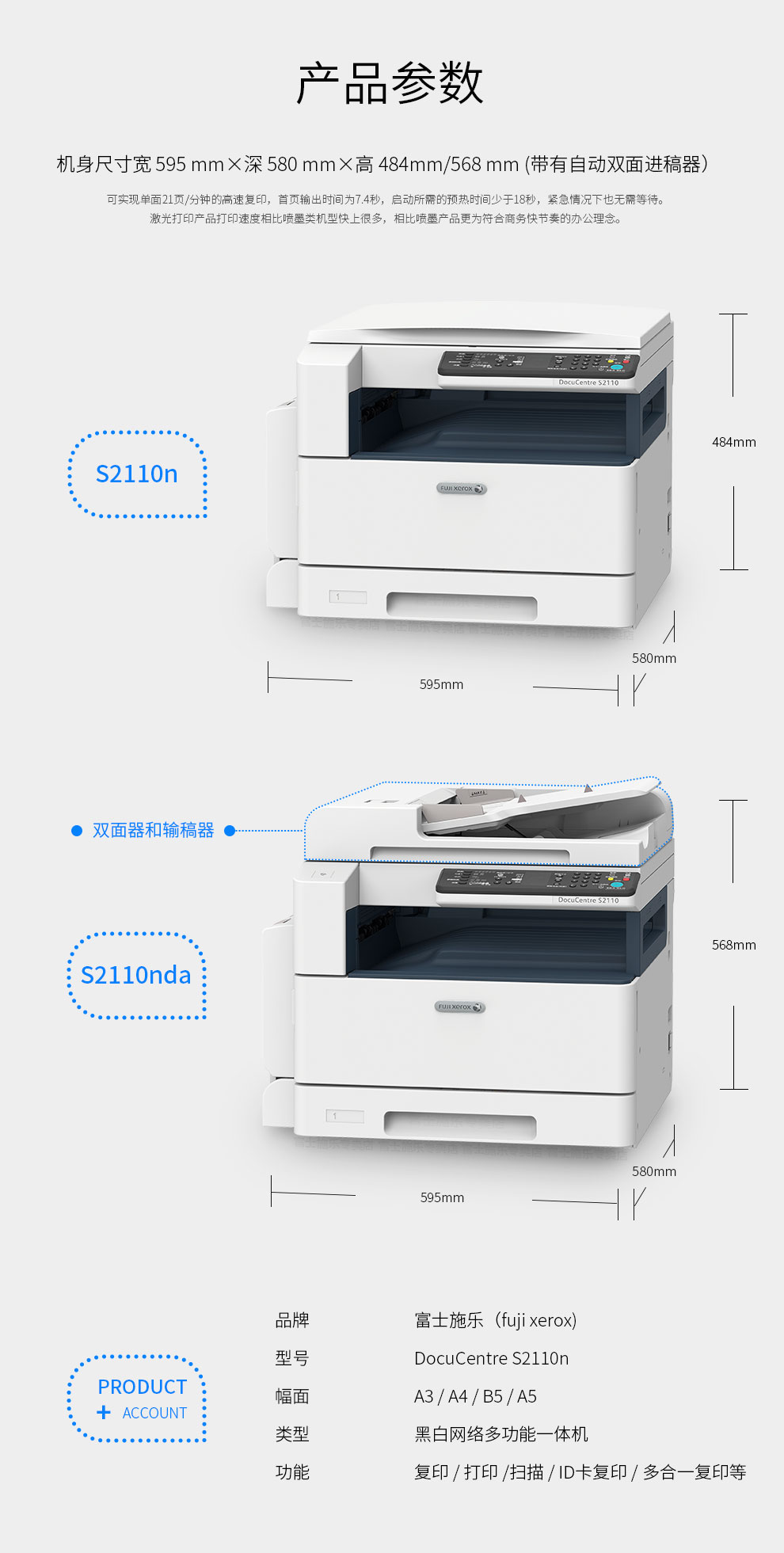 富士施乐DocuCentre S2110NDA/S2011NDA黑白数码复印黑白数码复印机